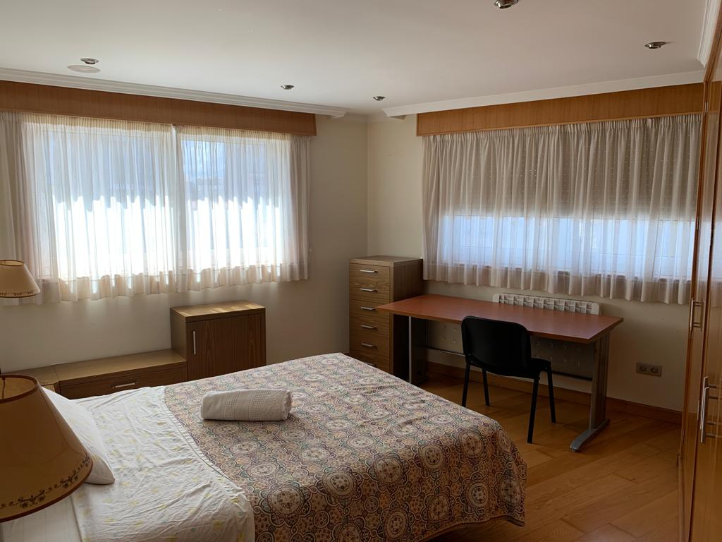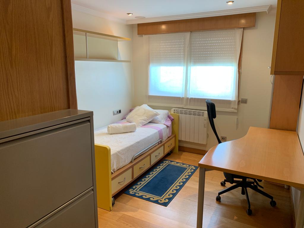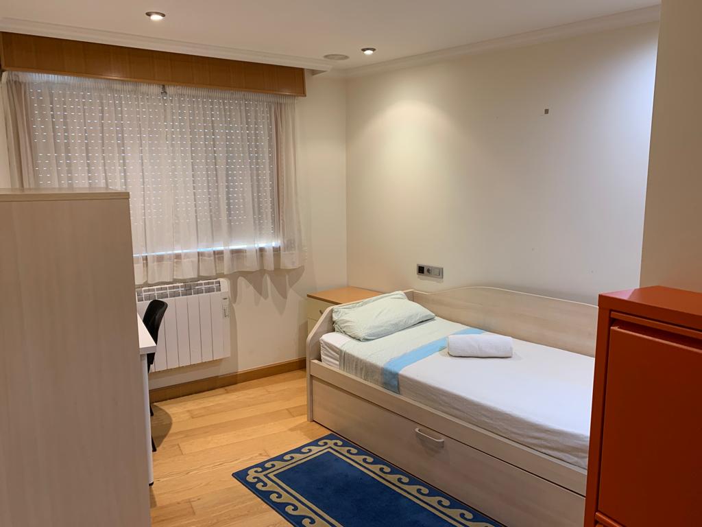 Disfruta de este luminoso y espacioso piso de 4 habitaciones, ideal para familias o grupos, con una habitación matrimonial y tres habitaciones individuales con camas de 0,90 m y escritorio, perfectas para trabajar o descansar cómodamente.