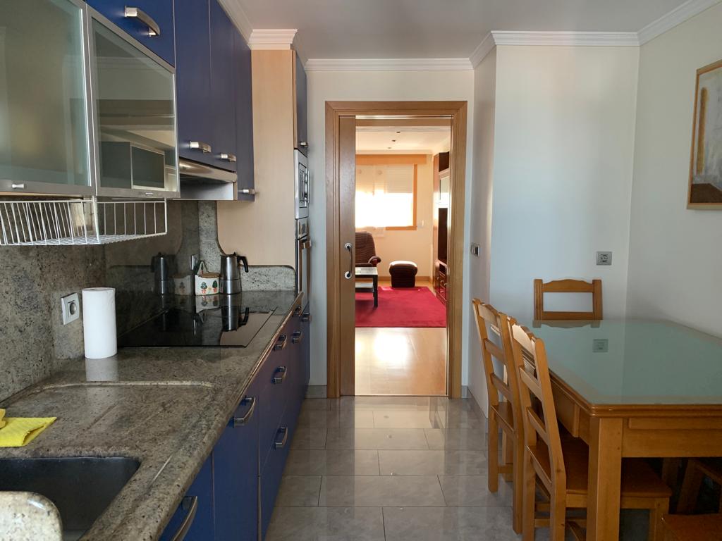 La cocina está totalmente equipada con vitrocerámica, horno, microondas, tostadora, cafetera y frigorífico combi, lista para preparar tus comidas con comodidad.