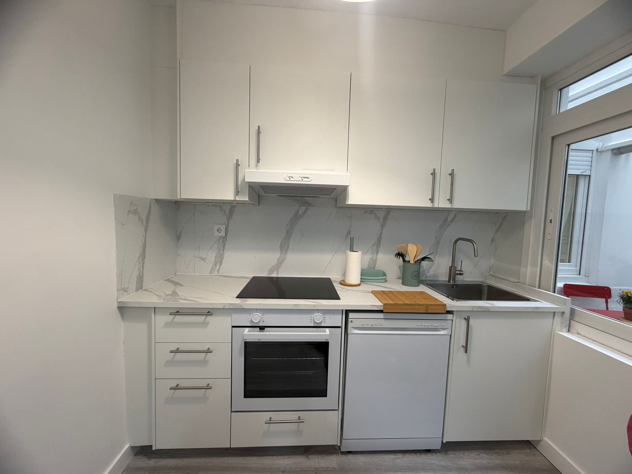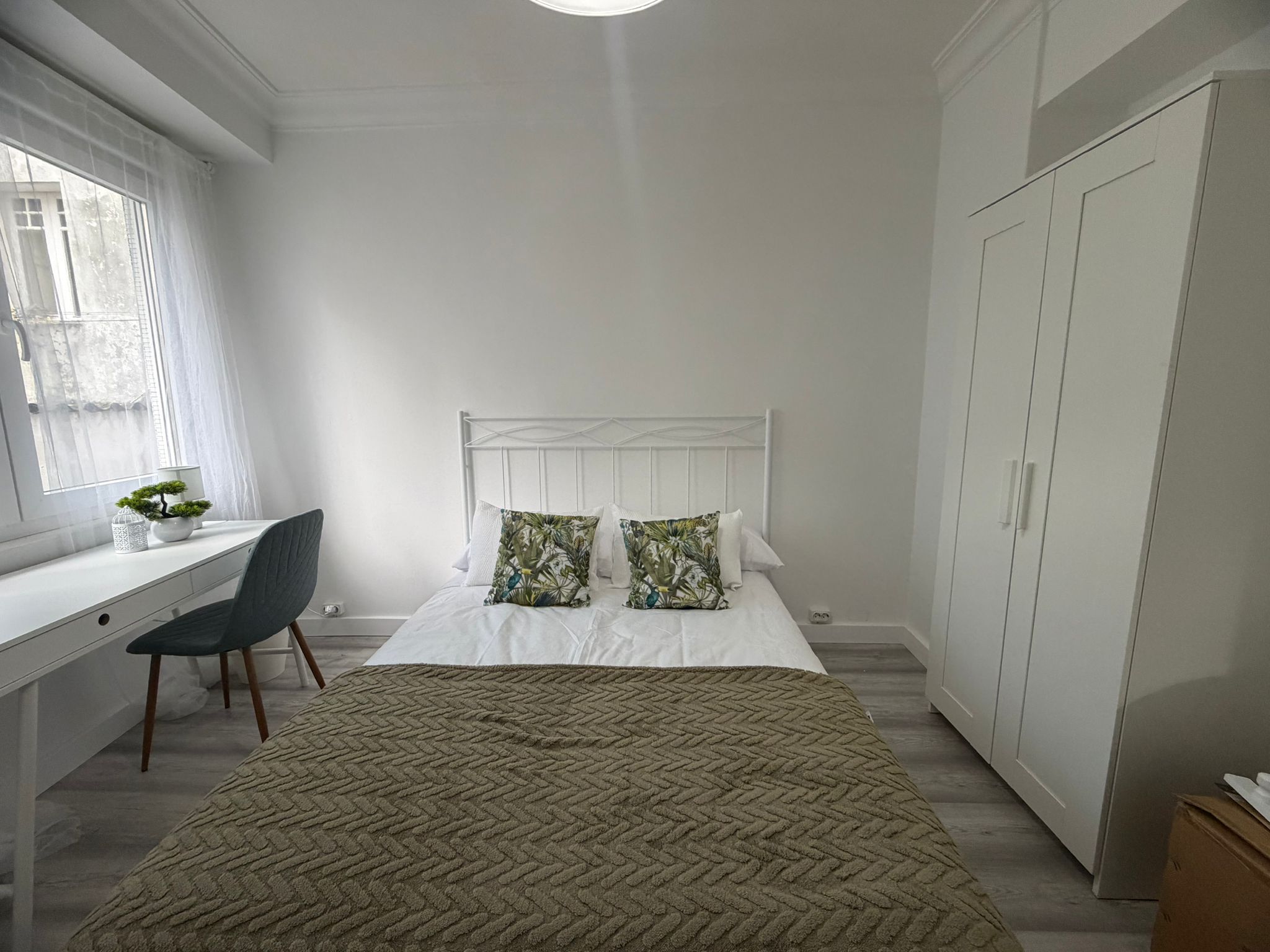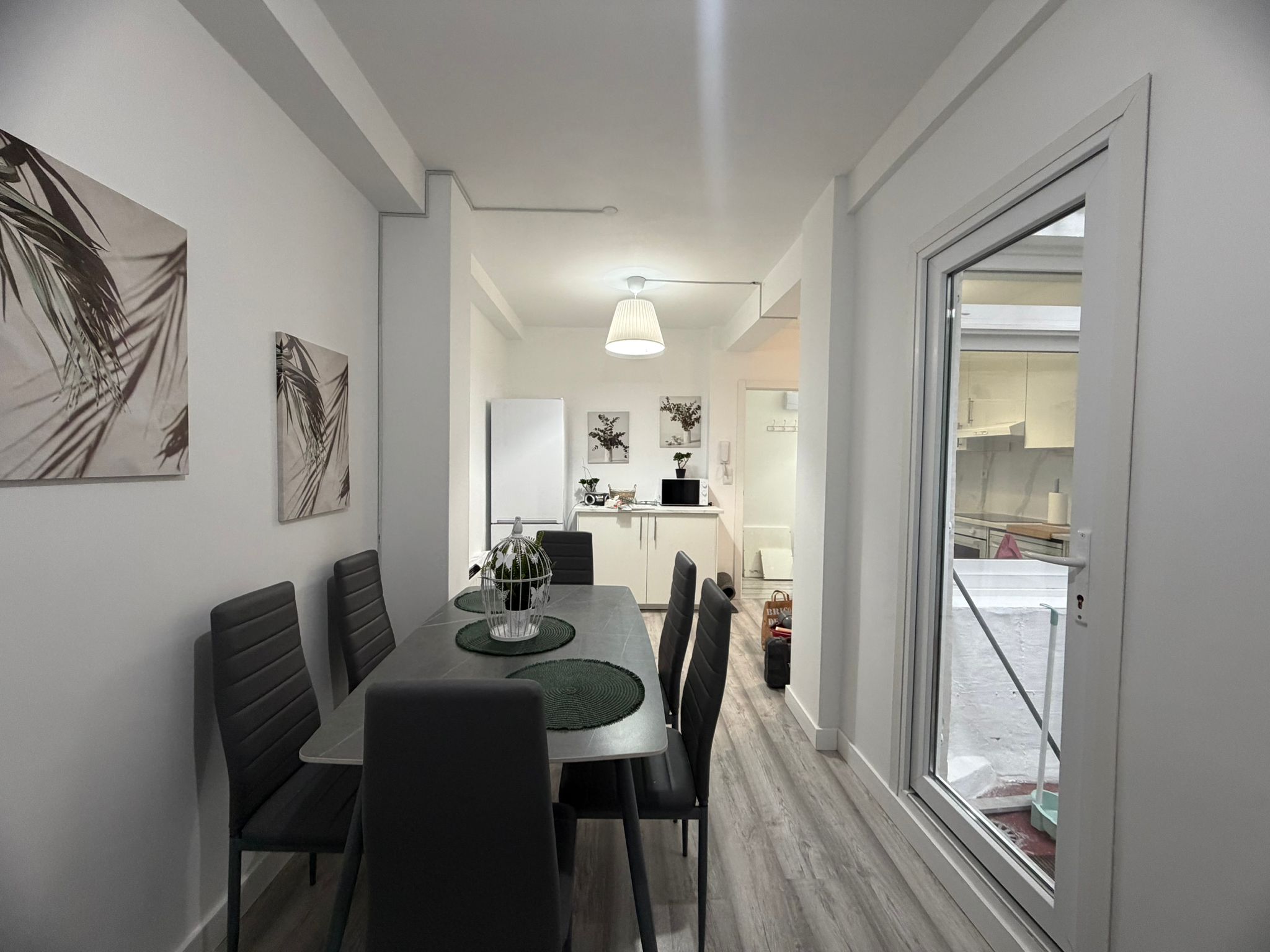 Apartamento acogedor y completamente reformado. Dispone de tres habitaciones amplias con cama de matrimonio, escritorio y armario, cuenta con un amplio espacio de cocina salón, la cocina completamente equipada con todo lo necesario para el día a día, baño completo con plato de ducha y mampara y también dispone de un pequeño patio interior.